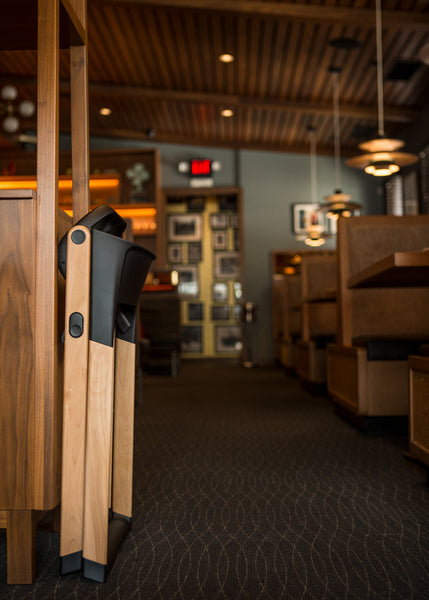 The Foodie Booster is the first contemporary foldable wooden high chair designed for restaurants. Its patented single action fold makes using it intuitive and safe. A single unit may rest flush against a wall while additional backup units fit in tight spaces.